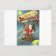 A vintage image of A Joyful Yule Tide, Santa with toys in balloon.