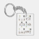 A keychain for electricians. One side has 2-way, 3-way, and 4-way switch wiring diagrams. The other side has the internal wiring diagram for a Universal Motor.