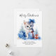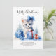 Meet the cutest Christmas helper! This sweet little kitten is sitting among a pile of holiday gifts, ready for the season. The image has a soft, whimsical watercolor style with a primary palette of blue and white, capturing the magic of a snowy holiday morning.