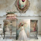 A Lady & a Parasol, Whimsical Floral Portrait, Digital Art, Decoupage Tissue Paper.
