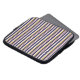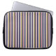 A laptop sleeve with colorful vertical stripes in purple, red, and yellow on a white background. The sleeve is shown open with a laptop partially inside.