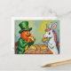 A leprechaun and a unicorn rabbit eating tacos postcard