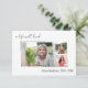 Modern Funeral thank you card personalised with 3 photos of your loved one. The design features elegant, classic typography for your sentiment, your loved one's name and living years - all of which is editable. On the back, you can customise the thank you message. This simple design makes a lovely memorial card for friends and relative to keep.