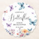 Capture the essence of eternal love with our enchanting bridal shower sticker. Delicate butterflies flutter amidst a lush meadow of wildflowers, evoking the timeless beauty of nature's romance.