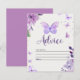 Give your advice to this future mom with this customizable shower advice card. Beautiful design for your baby girl shower with a Beautiful Thematic Butterfly and watercolor flowers in shades of Roses and Purples. Ideal to welcome that sweet girl on her way!