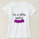 Halloween T-shirts, long sleeve tees, sweatshirts, bodysuits, mugs, cards, stickers, trick or treat tote bags, and more with a cute bat and text that reads "I'm a little batty!".