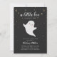 Celebrate the upcoming arrival of your little boo with our adorable ghost-themed baby shower invitation! Designed with a dark charcoal background, shimmering faux gold stars and moons, and a sweet minimalist ghost, this invitation blends spooky charm with playful elegance. Featuring a stylish mix of regular and script fonts and the cute phrase "A little boo is almost due," it’s perfect for a fall or Halloween-themed shower. The back showcases delicate wavy stripes in peach, grey, black, and white for an extra whimsical touch.