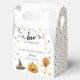 A little boo Halloween pumpkin fall baby shower favour box. Modern Halloween-themed design for a boo party! This baby shower favour box features a pumpkin, a witch hat, a balloon, candy corns, a moon and stars. This favour box is great for baby girls and boys shower parties!