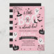 A little boo is almost due! Invite guests to your baby shower with this cute pink ghost and pumpkin Halloween baby shower invitation.