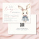 Celebrate the upcoming arrival of a baby girl with this adorable baby shower invitation. Featuring a hand-painted watercolor bunny in a charming blue dress and blush pink bow, this sweet and elegant design is perfect for a spring or woodland-themed baby shower. The soft pastel colours and script typography add a sophisticated touch. The back includes a convenient QR code for easy RSVP or registry access. Personalise this invitation with your event details and create a memorable celebration for the mum-to-be!