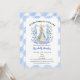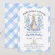 Embrace the enchanting charm of childhood with our delightful Peter Rabbit Baby Shower Invitation, perfect for celebrating the arrival of a baby boy. This exquisite invitation features the beloved Peter Rabbit donning his iconic blue jacket, nestled within a timeless vintage crest. Surrounding him are delicate blue wildflowers, evoking the innocence and beauty of nature. The invitation is bordered with a classic blue gingham pattern, adding a touch of vintage elegance that is both nostalgic and endearing. The back of the invitation continues this theme, ensuring a cohesive and sophisticated look. Ideal for those who appreciate the blend of whimsy and tradition, this invitation sets the perfect tone for a joyous occasion welcoming your little one into the world.