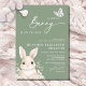 Celebrate the arrival of a little one with this adorable Bunny baby shower invitation. Featuring a soft sage green background, a sweet watercolor bunny, floral accents, and elegant script fonts, this charming design is perfect for woodland or spring-themed baby showers. Fully customisable with your event details. Shop now for a whimsical and timeless invitation!