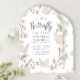 The "A Little Butterfly Botanical Whimsical Baby Shower Invitation" beautifully encapsulates the essence of anticipation and joy for the upcoming arrival of a new baby, with its delicate and whimsical design. This invitation is adorned with an arch frame of whimsical watercolor butterflies and lush greenery elements, all rendered in soft, neutral tones that convey a sense of tranquillity and natural beauty. The choice of butterflies as a motif symbolises transformation and new beginnings, making it a fitting theme for such a significant occasion.