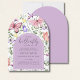 Invite your guests to a magical celebration with this whimsical butterfly-themed baby shower invitation. Featuring soft watercolor illustrations of fluttering butterflies, lush botanical greenery, and elegant fluttering butterflies in pastel pinks, lilacs, purple, and dark pink hues, this design is framed with a delicate purple arch border for a dreamy, feminine touch. Perfect for honouring the mum-to-be and welcoming a sweet baby girl, this invitation pairs beautifully with our matching collection of plates, napkins, favour tags, welcome signs, and more. Fully customisable with your shower details – it's the perfect first step to a beautifully coordinated event.