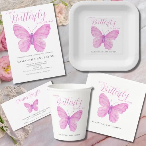 A little butterfly pink baby shower invitation. Easy to change the text. Pretty watercolor pink butterfly for baby girl.