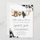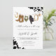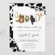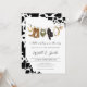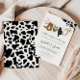 COWBOY COW (BLACK) - This adorable South Western, Rodeo Cowprint, Cowboy Boy baby shower invitation is fully editable, can be printed and mailed out or the birthday evite can be shared via email and social media! This Cowboy Baby Shower Invitation showcases a pair of Cowboy Boots & Cowboy Hat, Lasso, and a green bandanna hanging on a line, surrounded by black cowprint. Also included is a black cowprint backside. This Wild West Rodeo, Baby Shower Invitation is sure to complete any Western Themed baby shower, gender reveal, or other cowboy themed event! By using the easy to use Zazzle software (no download necessary) right in your browser, you simply purchase and personalise all in the same place. It's as easy as that!
