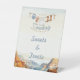 Round up your loved ones for an all around good time with this charming "A Little Cowboy is On The Way" baby shower theme! This beautifully designed pedestal sign captures the rustic charm of the Wild West, perfect for welcoming your little buckaroo. There is lasso clothesline fun hung with a denim sheriff baby bodysuit, cowboy boots, cowboy hat, and a bandanna that doubles as a bib. A watercolor western canyon backdrop sets the scene. Its unique, watercolor style and playful details will add a special touch to your baby shower decor to welcome your new little cowboy.