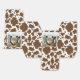 "A Little Cowboy Is On His Way" and we know you are so excited! Celebrate the Mum (or Parents) to Be in rustic western cow poke style with this boy "Baby Shower" design. Features a watercolor sand base with assorted cacti, a horseshoe, boots and cowboy hat along with a rustic wooden sign announcing the "Baby Shower" against a big dark brown horseshoe on front. Background pattern features a faux brown cowhide pattern. Composite design by Holiday Hearts Designs.