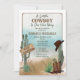 The front design features a sandy watercolor base adorned with classic western elements, including assorted cacti, a horseshoe, cowboy boots, and a cowboy hat. A rustic wooden sign takes center stage, proudly announcing the Baby Shower and tying the theme together with a cozy, country feel. The back is finished with a reddish-brown cowhide pattern, adding a playful western touch that complements the overall design beautifully. This theme is ideal for a cowboy-inspired baby shower that feels heartfelt, stylish, and full of down-home charm.