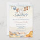 Round up your loved ones for an all around good time with this charming "A Little Cowboy is On The Way" baby shower invitation! This beautifully designed invitation captures the rustic charm of the Wild West, perfect for welcoming your little buckaroo. There is lasso clothesline fun hung with a denim sheriff baby bodysuit, cowboy boots, cowboy hat, and a bandanna that doubles as a bib. A watercolor western canyon backdrop sets the scene on the front and back of the card. Its unique, watercolor style and playful details will get everyone excited to celebrate your new little cowboy!