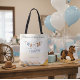 Round up your loved ones for an all around good time with this charming "A Little Cowboy is On The Way" baby shower theme! This beautifully designed tote bag captures the rustic charm of the Wild West, perfect for welcoming your little buckaroo. There is lasso clothesline fun hung with a denim sheriff baby bodysuit, cowboy boots, cowboy hat, and a bandanna that doubles as a bib. A watercolor western canyon backdrop sets the scene on the front and back of the bag. Its unique, watercolor style and playful details will add a special touch to your favours as you welcome your new little cowboy. Easily edit the text on the front and back and if you would like to, change the font style, size, colour, and placement.