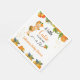 adorable cute little cutie orange theme baby shower napkins for girl. Vibrant oranges with cute little baby dressed in orange themed outfit.