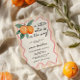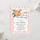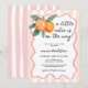 Welcome your little bambino in style with this charming "A Little Cutie Is On The Way" whimsical Mediterranean baby shower invitation! Featuring a delightful blend of vibrant oranges, whimsical stripes, and a trendy wavy border, this design captures the essence of a sunny Amalfi Italian summer. Perfect for celebrating a baby girl, this quirky pink stripe invitation combines elegance and playfulness, making it ideal for an unforgettable event. The sophisticated yet whimsical aesthetic evokes a timeless Mediterranean charm, setting the perfect tone for your special day. Customise with your event details and get ready to say "Ciao" to your bundle of joy!