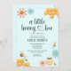 Baby shower invitations featuring a honey and bee theme with flowers.