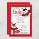 A little lady is on the way cute ladybug baby shower invitation template. Black and red themed baby shower for a baby girl.