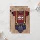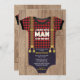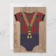 Super cute! Oh boy! A new little man is on the way! An adorable baby shower invitation featuring a baby bodysuit / sleeper / one piece / pajama with a lumber jack (lumberjack) hipster flair - tartan plaid check and blue jean denim, to welcome a baby boy or two (Perfect for a twin shower too, just adjust the wording to "suit" your needs!)