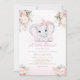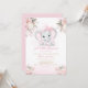 Modern Dreamy A Little Peanut Pink Watercolor Floral Elephant Girl Baby Shower Invitation