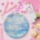 A little piece of heaven sent baby shower plates. This is an editable and printable cloudy plate template. Featuring beautiful Graphics of blue sky elegant script and calligraphy. The design showcases delicate and pastel watercolor illustrations.