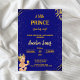 Adorable navy blue and gold prince baby shower invitation template. Cute with blue and gold accents.