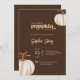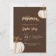 Set the tone for a cosy and elegant celebration with this little pumpkin baby shower invitation in dark brown. Perfect for a fall-themed event, this design features a rich brown background with a charming watercolor pumpkin, autumn foliage, and warm seasonal accents. Whether you're hosting an intimate gathering or a larger celebration, this invitation offers customisable text fields to perfectly fit your event details. Ideal for those who love rustic, earthy, and autumn-inspired aesthetics, this dark brown pumpkin baby shower invitation adds a touch of sophistication to your special day.