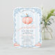 A Little Pumpkin Blue Bow Fall Boy Baby Shower Invitation. Matching items available