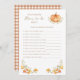 Celebrate your soon-to-be fall baby with your friends and family to share in the joy of your little one's arrival with this baby shower who knows mum-to-be best game card featuring a watercolor pumpkin, fall foliage and an orange brown plaid pattern on the back.