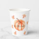 A Little Pumpkin Watercolor Halloween Fall Paper Cups, feature with the word " Our Little Pumpkin" design modern, minimal orange watercolor pumpkin and fall leaves, perfect for Halloween, Fall Baby shower, baby expected in Fall.