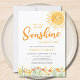 This adorable baby shower invitation features "A little ray of sunshine is almost here!" in stylish typography, accompanied by a watercolor sun and wildflowers.