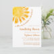 This cute sunshine grandbaby shower invitation features the text "A little ray of sunshine is almost here!" with a yellow sun.