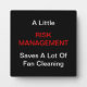 This plaques says it all, "A Little Risk Management Saves A Lot Of Fan Cleaning" and is perfect for your desk or office. Great gift for a boss or co-worker.