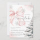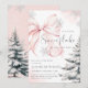 The blush pink bow "A Little Snowflake is on the Way" baby shower invitation template is the perfect way to invite your guests to a chic and elegant winter-themed baby shower. Featuring a soft, blush pink bow adorned with delicate snowflakes and a snowy pine tree, with the charming script "A Little Snowflake is on the Way" message, this design exudes a modern yet classic winter wonderland vibe.