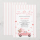 Celebrate the upcoming arrival of a precious little one with this charming “A Little Sweetheart Is on the Way” baby shower invitation. Designed in soft blush pink tones with delicate stripes, floating hearts, and an adorable teddy bear illustration, this invitation sets the perfect sweet and welcoming tone for your celebration.