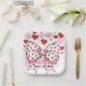 Add a touch of elegance to your baby shower with our A Little Sweetheart Baby Shower Paper Plate. Featuring a delightful coquette bow with a red heart pattern surrounded by pink and red hearts, this paper napkin perfectly complements your celebration.