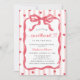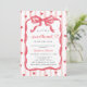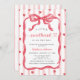 Celebrate the mommy--to-be with a Valetine's Day inspired baby shower invitation! This Little Sweetheart Invitation includes a watercolor bow, pink stripes, and red hearts.