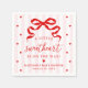 Add a charming finishing touch to your celebration with this sweetheart baby shower napkin featuring the phrase “A Little Sweetheart Is on the Way!” in bold red lettering. The design showcases a statement bow illustration at the top, paired with soft pink and white vertical stripes and scattered heart accents throughout. Personalized text at the bottom allows you to include the mother-to-be’s name and the date, making the napkin feel thoughtfully coordinated with the rest of your baby shower stationery. Designed to complement sweetheart-themed and Valentine-inspired baby showers, this napkin adds a polished and cohesive look to your table settings.