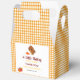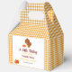 This beautiful cute Baby Shower Favour Boxes design features Thanksgiving Turkey baby shower " A Little Turkey Is On The Way" themes with a cute little turkey, fall season pumpkins and yellow orange white gingham border and Pattern in warm autumn colours. Easily customisable and editable text, fonts and colours, and celebrate your baby shower party.