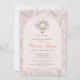 Autumn & Thanksgiving Baby Shower Invitation for a baby girl. Features a cute hand-drawn baby girl turkey and adorable gingham feathers against an apricot cream background. The back features a gingham feathers pattern in a lighter cream colour.