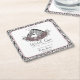 This stylish A Little Wild One Mommy and Baby Zebra Square Paper Coaster features the full “A Little Wild One Is on the Way” title and hand-drawn zebra mama and baby illustration at the top, surrounded by romantic mauve, lilac, and blush pink roses with subtle botanical details for a soft gothic touch.