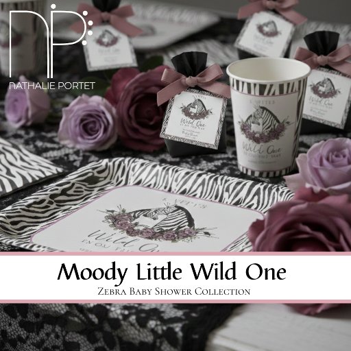 Moody Little Wild One Zebra Baby Shower CollectionDesigned by Nathalie Portet