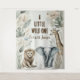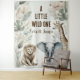 A minimalist design featuring watercolor safari baby animals and muted jungle foliage, accented with elegant text for a gender neutral baby shower or first birthday.